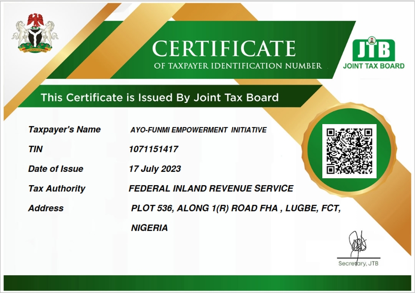 Certificate of Tax Payers Identification Number (TIN)