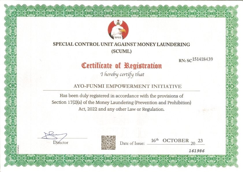 Special Control Unit Against Money Laundering (SCUML) Certificate
